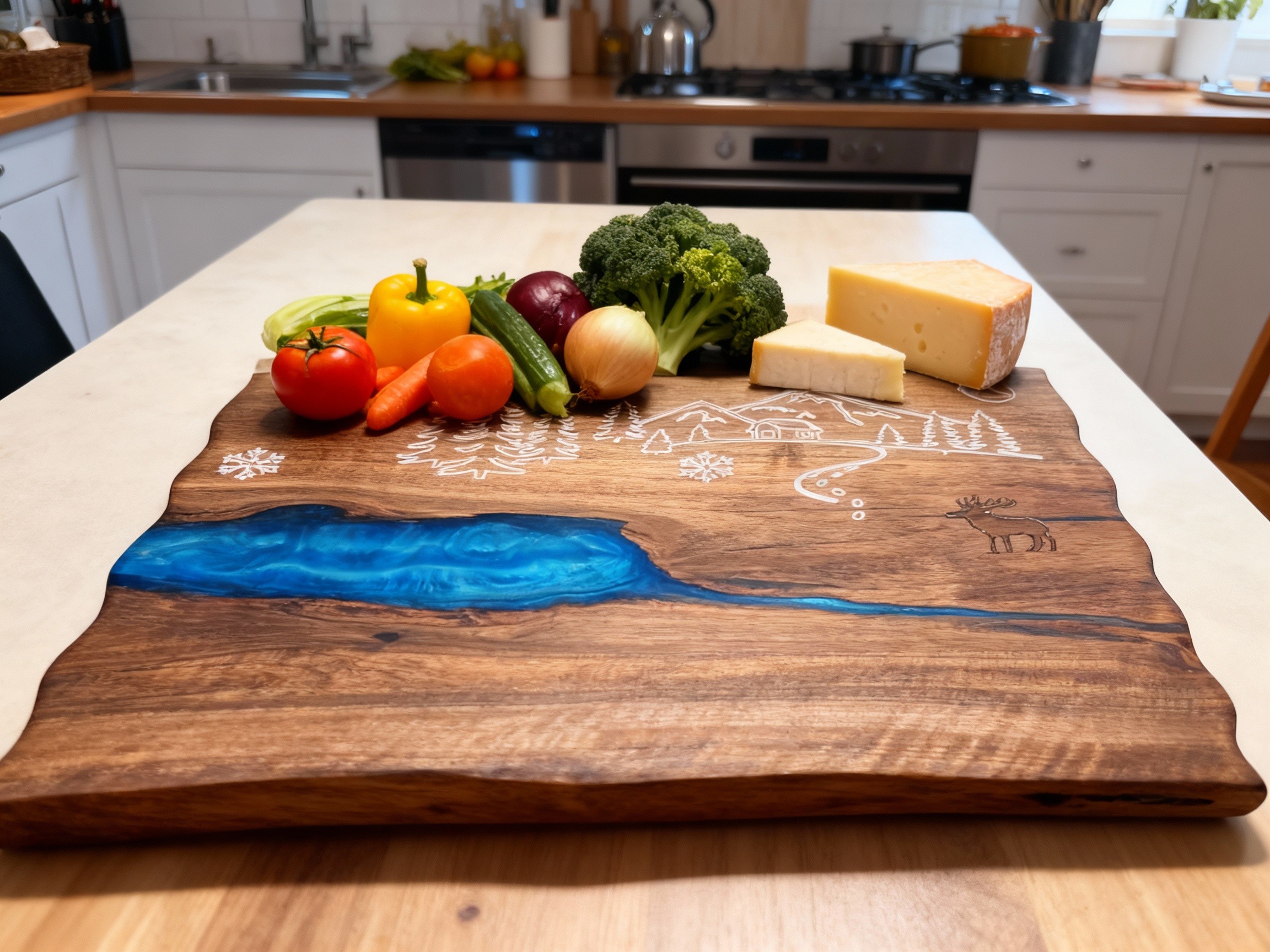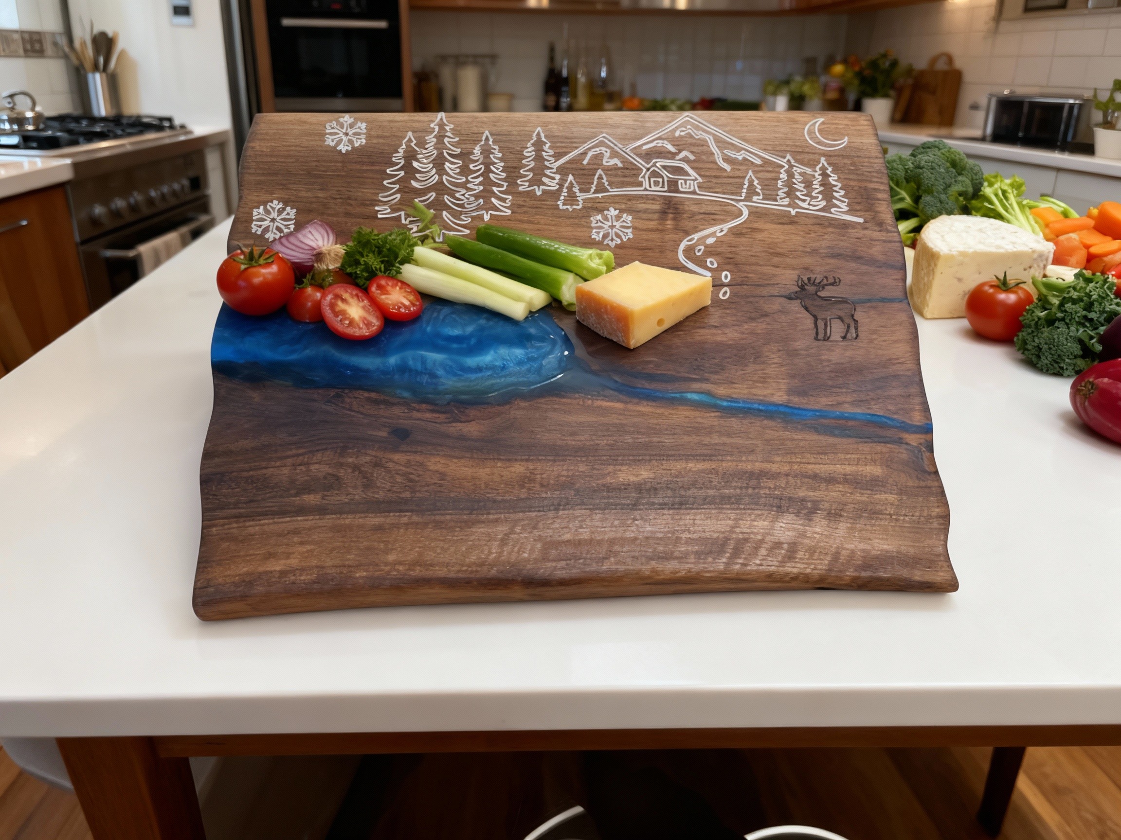 Cu o formă unică, inspirată de conturul natural al lemnului, și dimensiuni generoase 40 X 33 X 4 cm, "Poveste de Iarnă" este ideal nu doar pentru prepararea ingredientelor, ci și ca platou de servire impresionant. Este perfect pentru a prezenta cu stil aperitive, brânzeturi fine, fructe sau deserturi, transformând orice masă într-un eveniment memorabil.